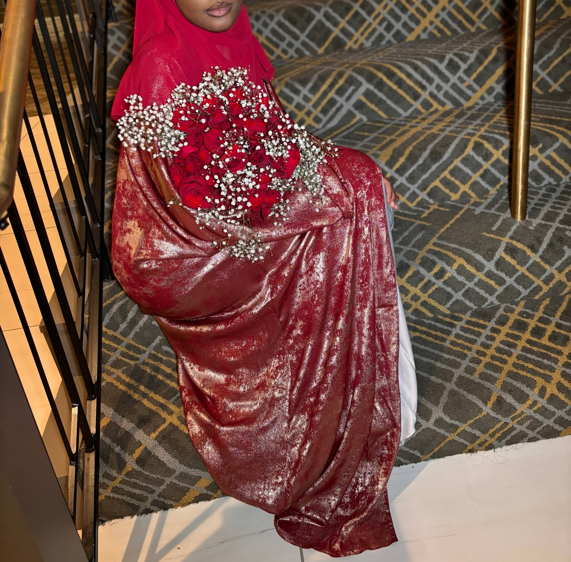 Asma Abaya includes an open abaya, satin slip under dress and a beautiful chiffon hijab to match the abaya.